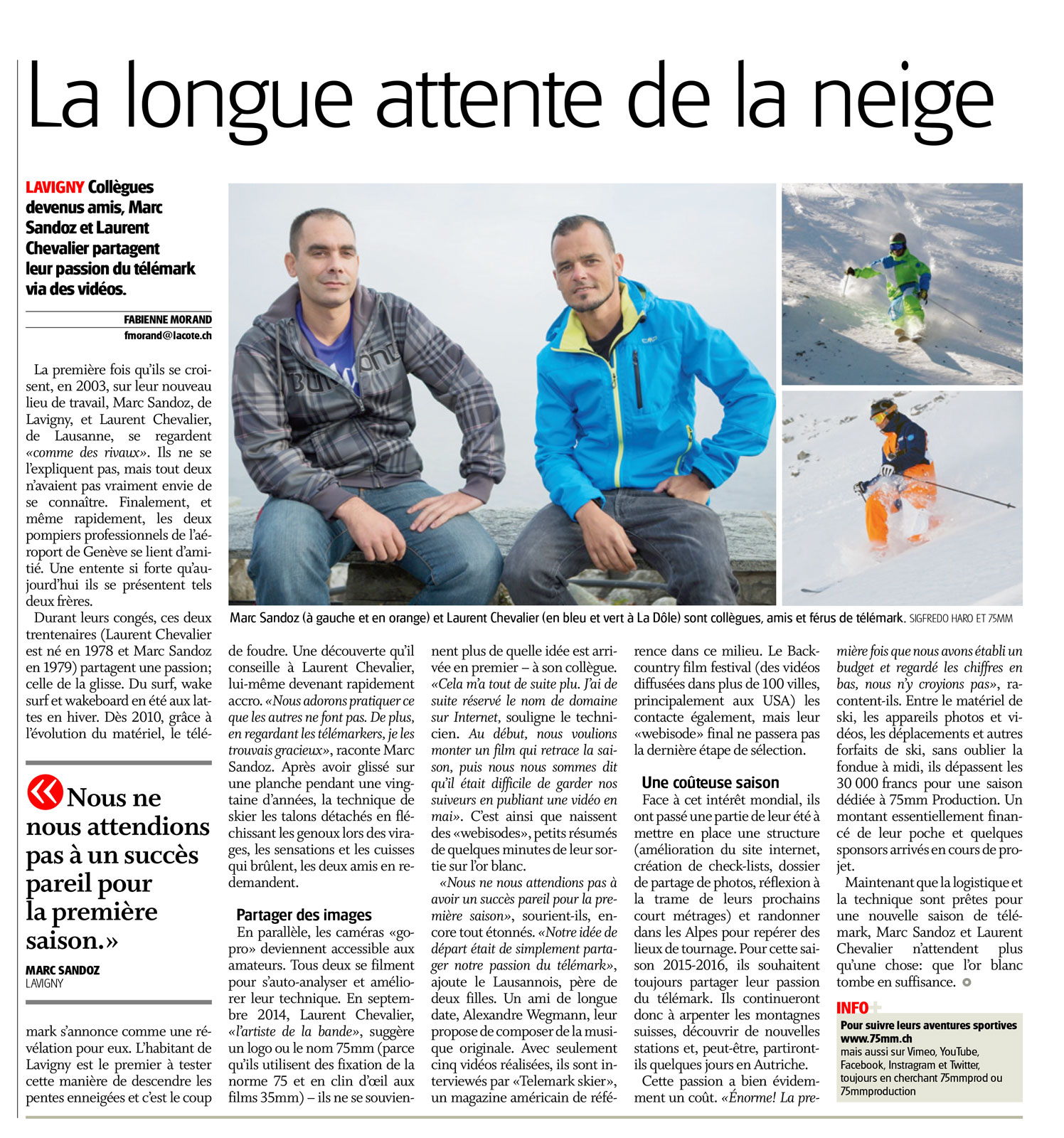 Le télémark est encore bien méconnu dans nos régions. Ainsi nous avons eu le plaisir d’être approché par certains journaux et magazines pour raconter notre histoire, nos motivations et nos objectifs. Relisez ces articles qui nous ont permis de mieux nous faire connaître.