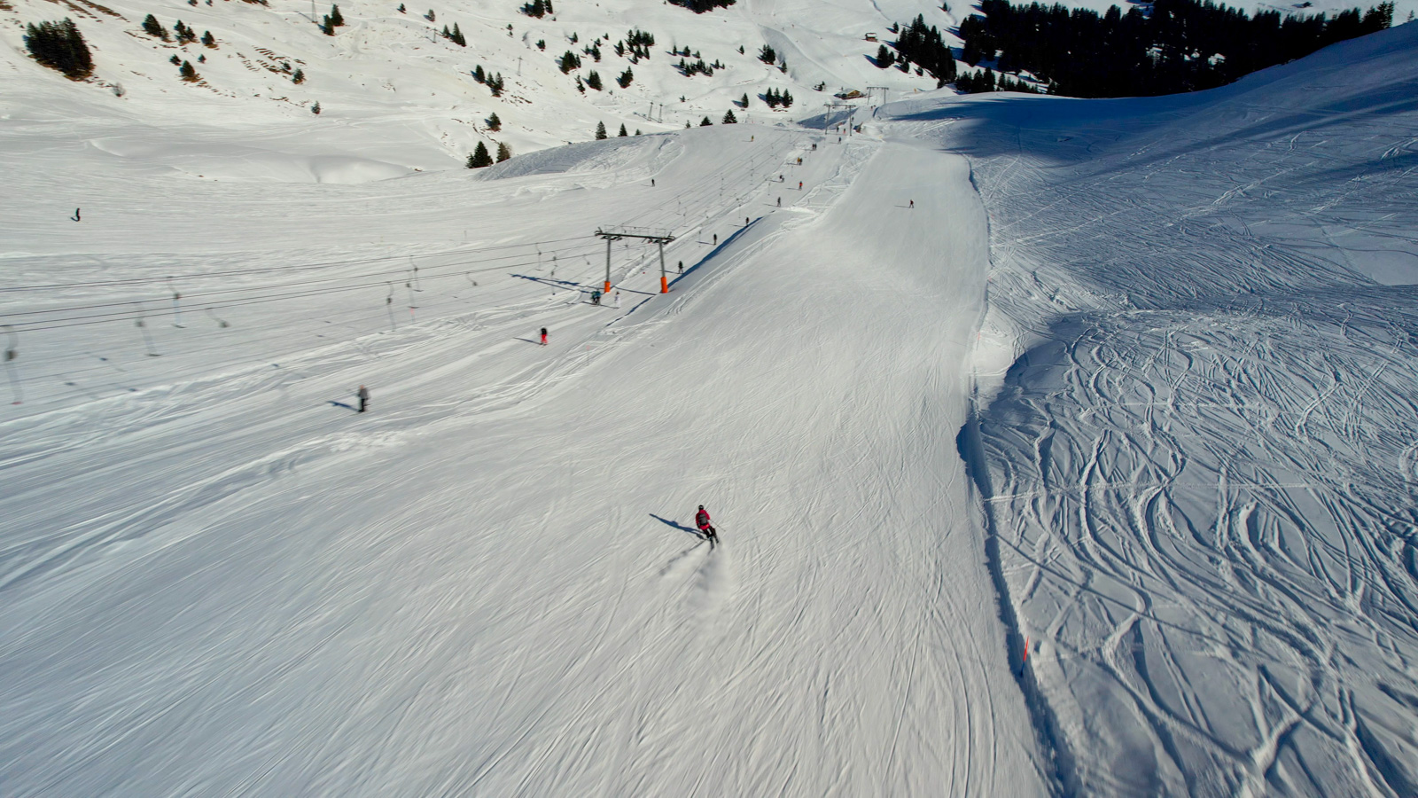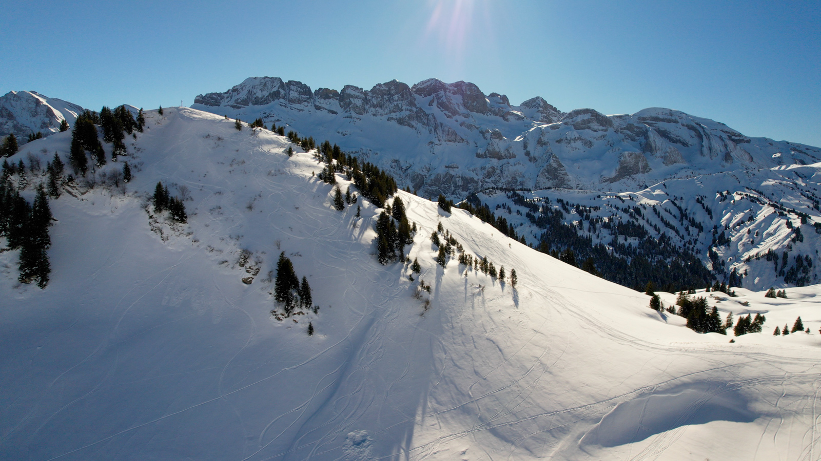 Nous débutons cette escapade en pleine semaine, profitant que les enfants soient à l’école et à la crèche, pour une première étape dans le domaine des Portes du Soleil, plus précisément aux Crosets. La météo est splendide, les conditions parfaites et surtout, nous retrouvons cette complicité qui nous unit depuis tant d’années. Juste nous deux, skis aux pieds, savourant l’instant présent.