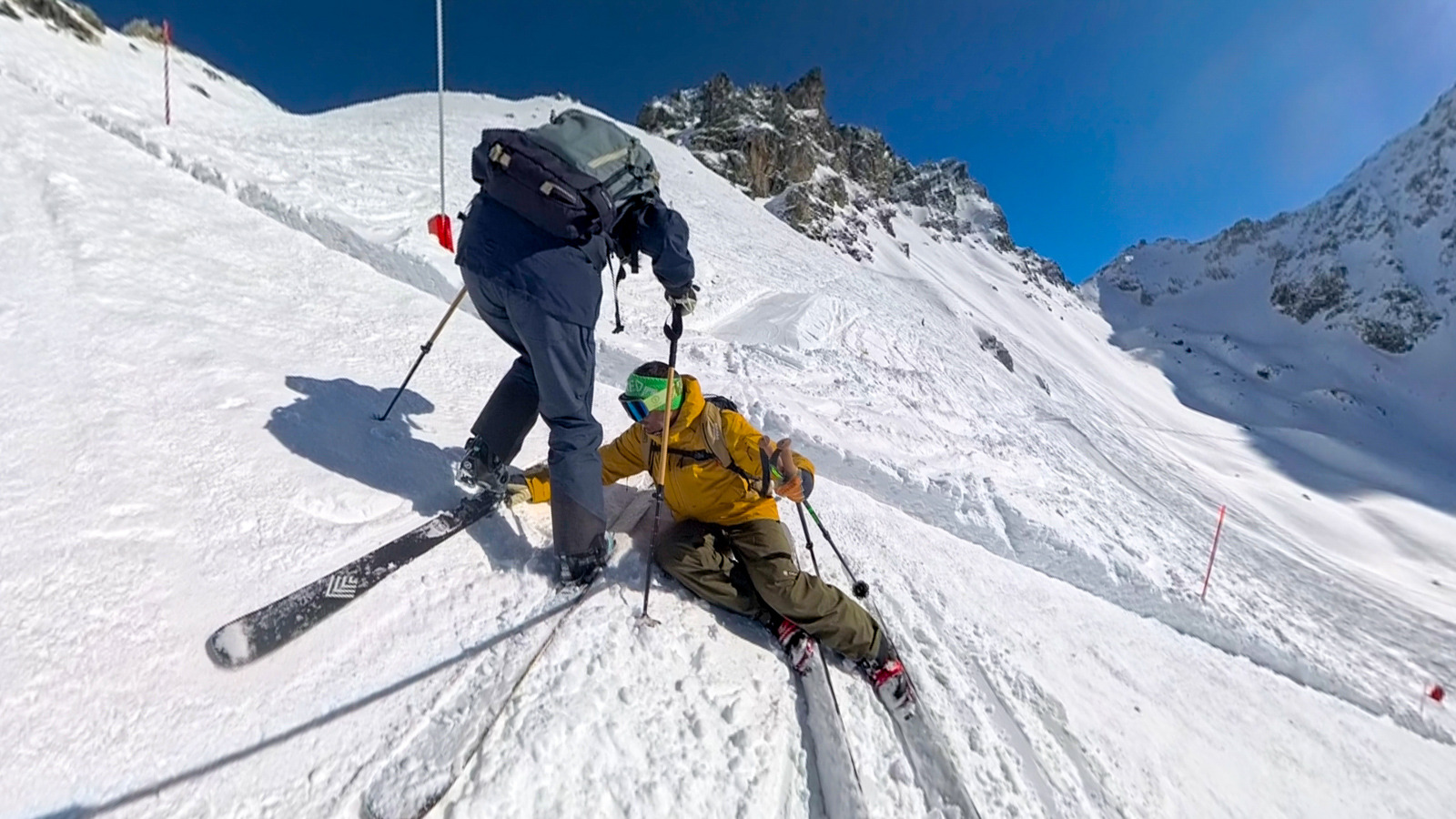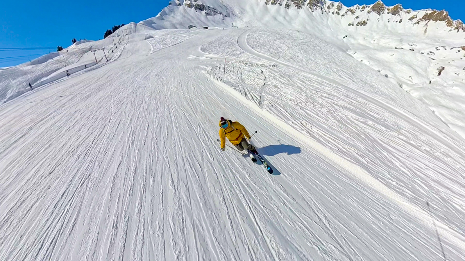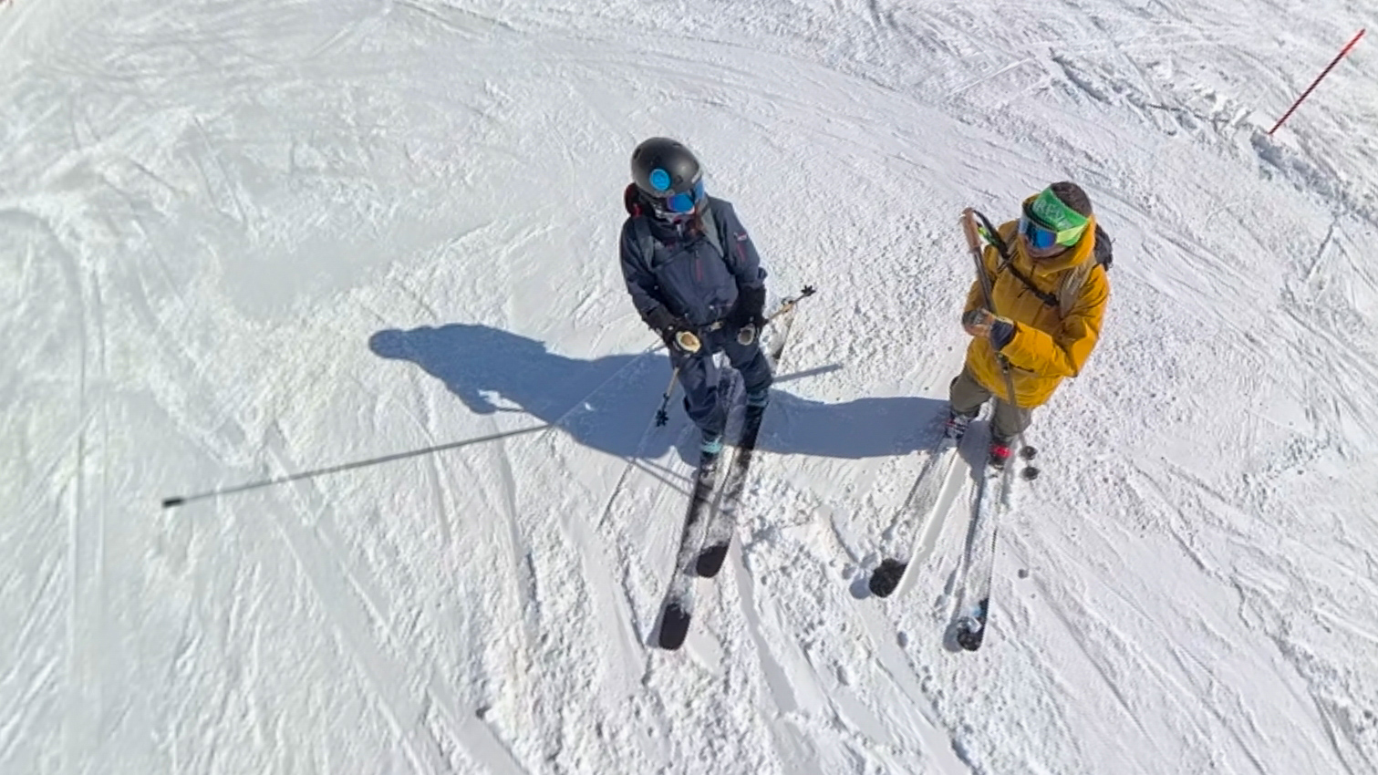 Mes nouveaux Reliance 92 de chez Armada me mettent totalement en confiance ! Marc lui, est absorbé par ses nouvelles caméras et par chance, ne va pas aussi vite qu’avec ses acolytes habituels, ce qui me permet de ne pas me retrouver trop loin derrière. Il m’initie à son matériel, joue avec les angles, test des plans. Quand il me dit que je le ralentis beaucoup moins, c’est sûrement vrai par rapport à il y a 6 ans en arrière, mais il faut avouer qu’il y a encore pas mal de job pour espérer pouvoir le suivre partout ! Mais l’essentiel est là : le plaisir de partager une passion devenue commune, de profiter d’un temps précieux passé ensemble, dans la joie et l’amour.