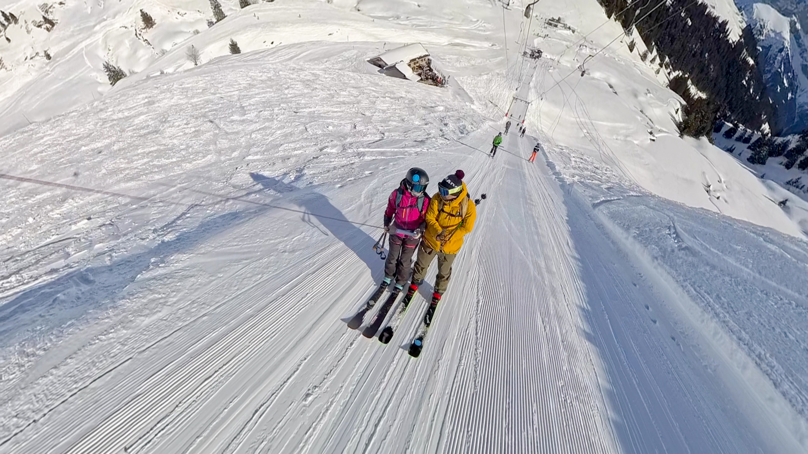 Maya prend de plus en plus confiance grâce à ses nouveaux Reliance 92 de chez Armada qui lui correspondent à merveille. Elle enchaîne les virages avec aisance, le sourire aux lèvres – une fierté bien visible. De son côté, Marc est ravi de ses nouvelles caméras, qu’il commence à bien maîtriser. Il capture avec passion chaque mouvement, chaque émotion, immortalisant ainsi ces moments de complicité.