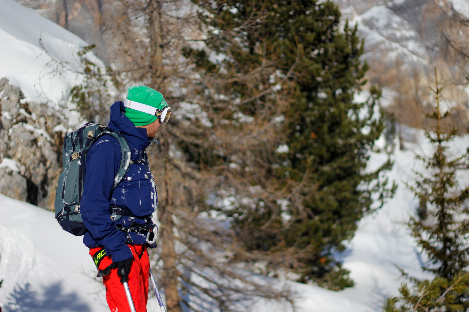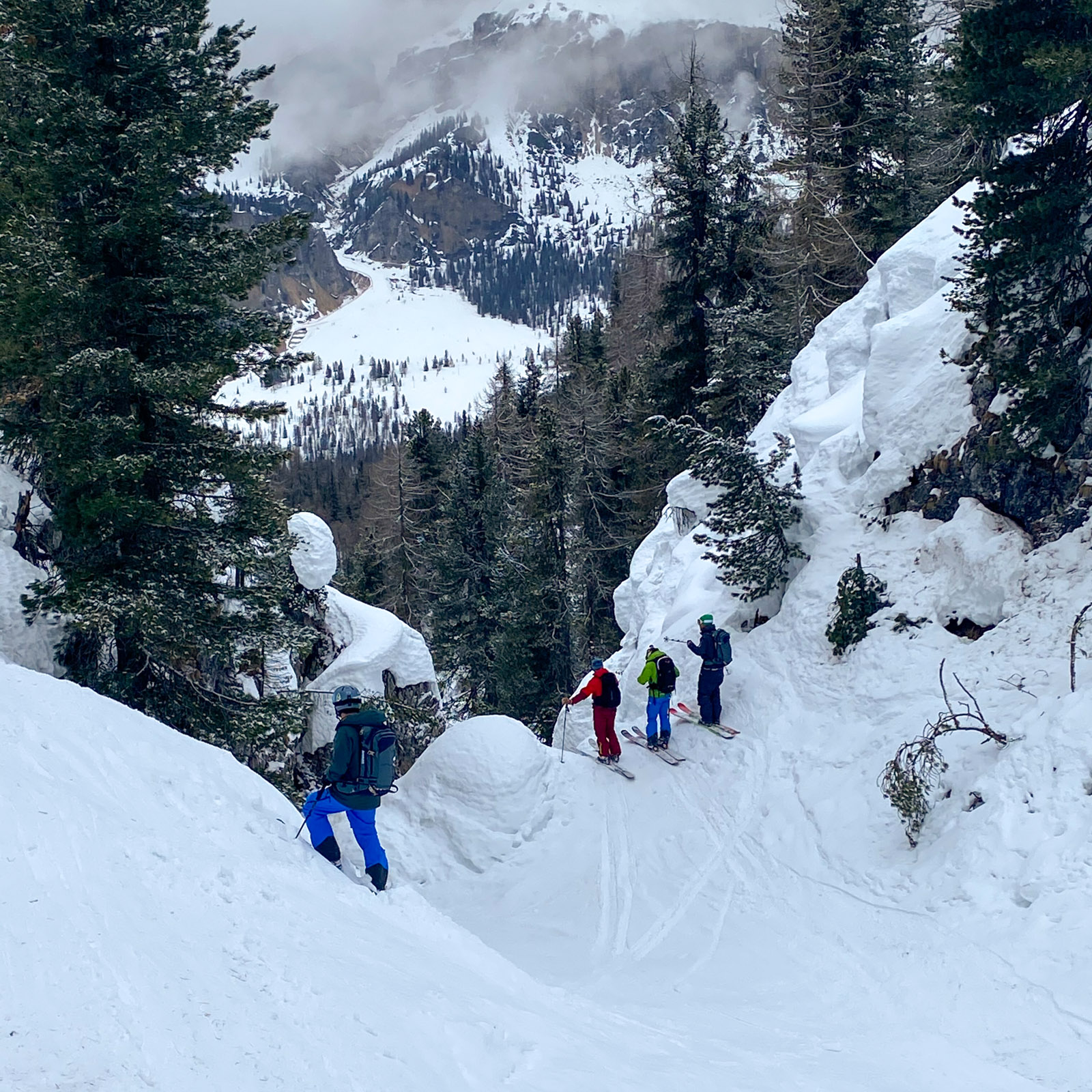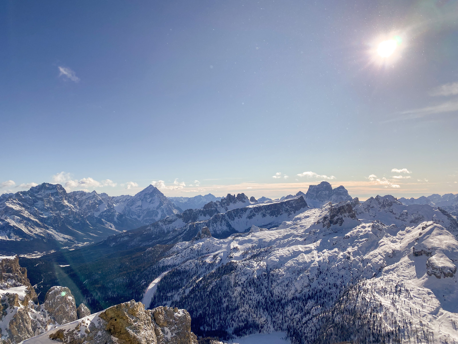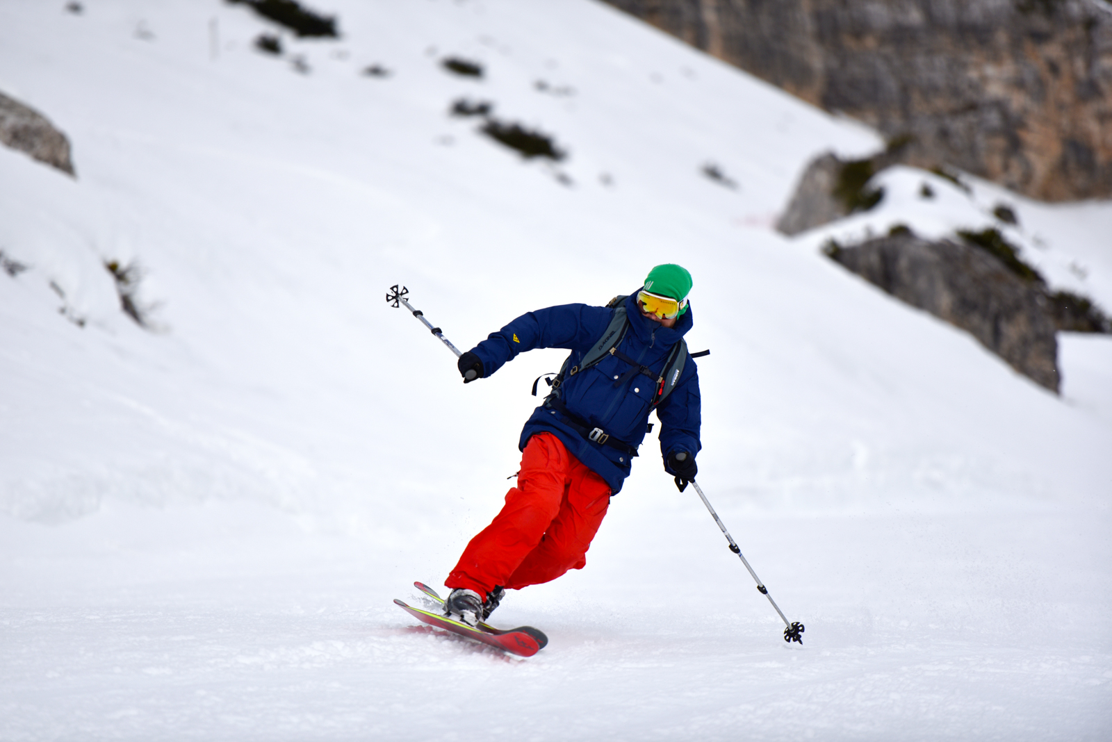 Morgins, 25 janvier 2020, 5h30. Nous chargeons la voiture, il y en a du matériel. Et c’est parti pour un trip routier de 10h, destination Cortina d’Ampezzo dans les Dolomites en Italie. Nous sommes tous les 7 dans la voiture, ça va être long. Après quelques pauses et quelques changements de pilote, nous arrivons dans la station le soir, et rencontrons notre guide Paolo Tassi, lui aussi télémarkeur. La semaine est lancée!