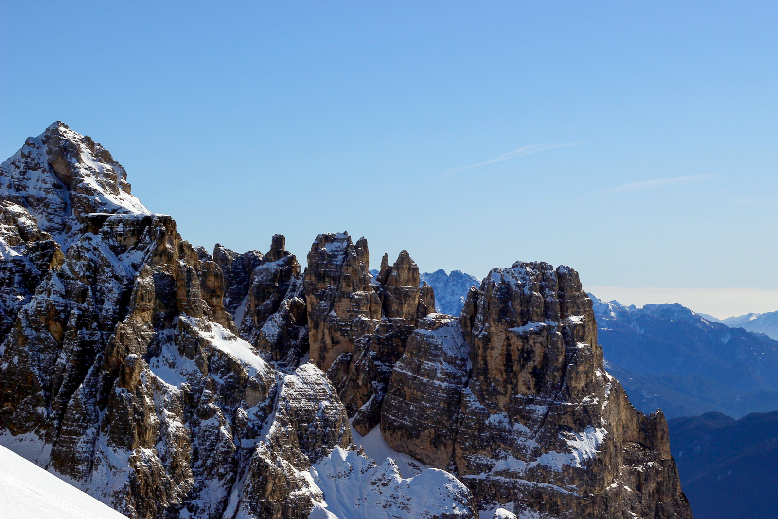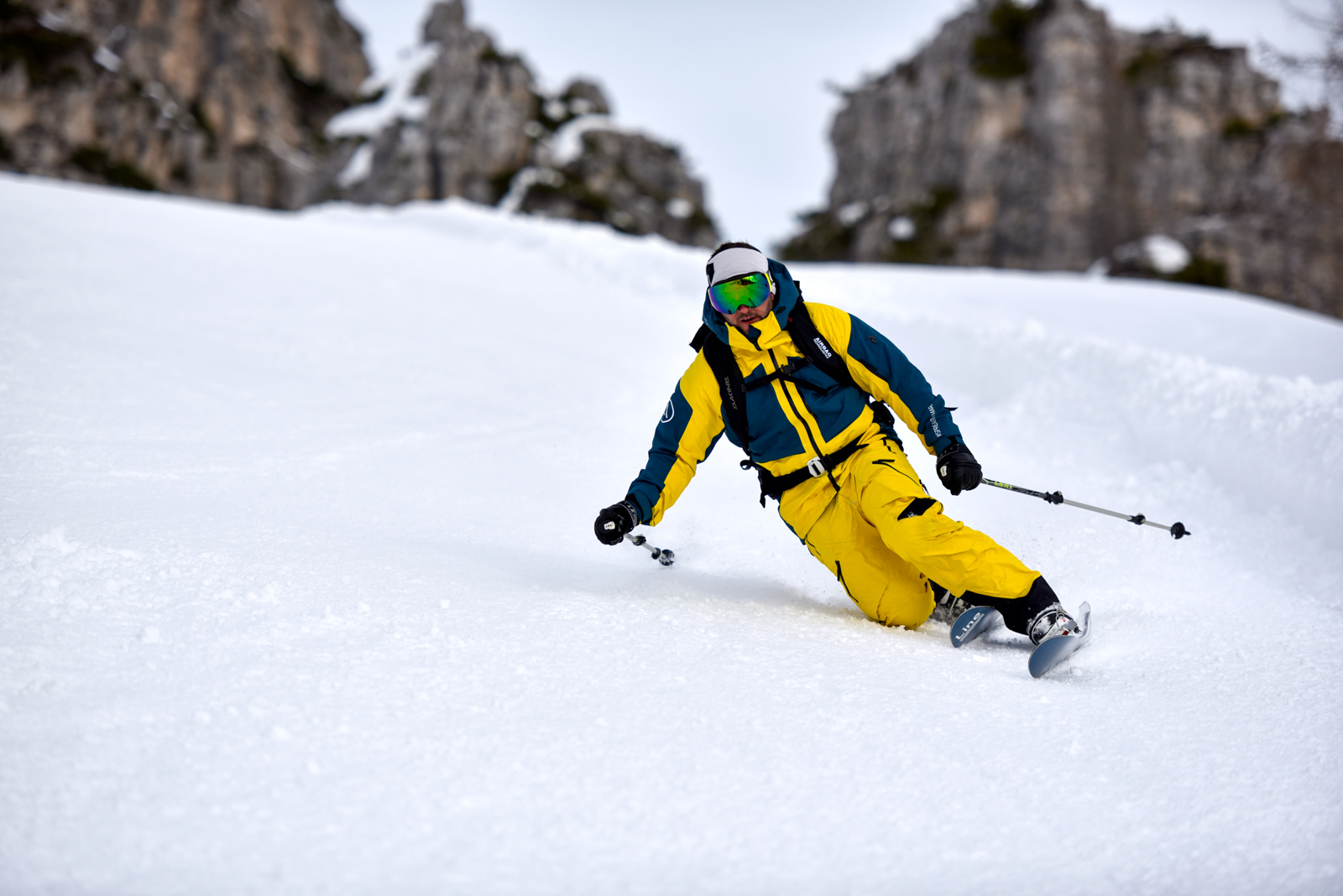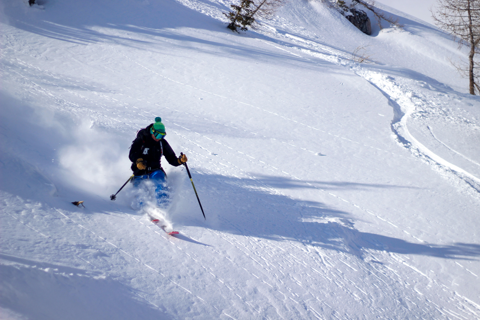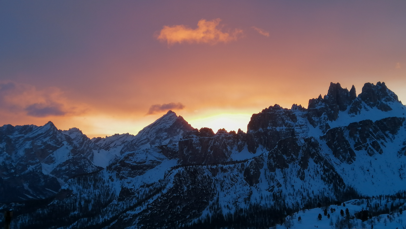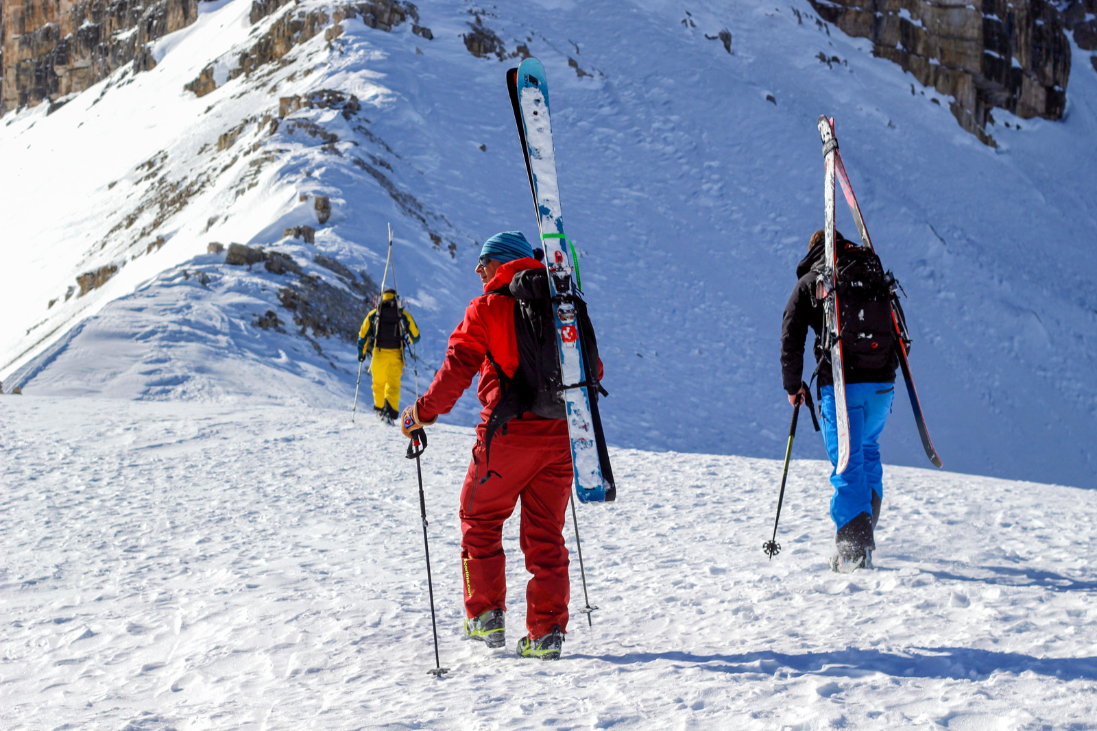 Morgins, 25 janvier 2020, 5h30. Nous chargeons la voiture, il y en a du matériel. Et c’est parti pour un trip routier de 10h, destination Cortina d’Ampezzo dans les Dolomites en Italie. Nous sommes tous les 7 dans la voiture, ça va être long. Après quelques pauses et quelques changements de pilote, nous arrivons dans la station le soir, et rencontrons notre guide Paolo Tassi, lui aussi télémarkeur. La semaine est lancée!
