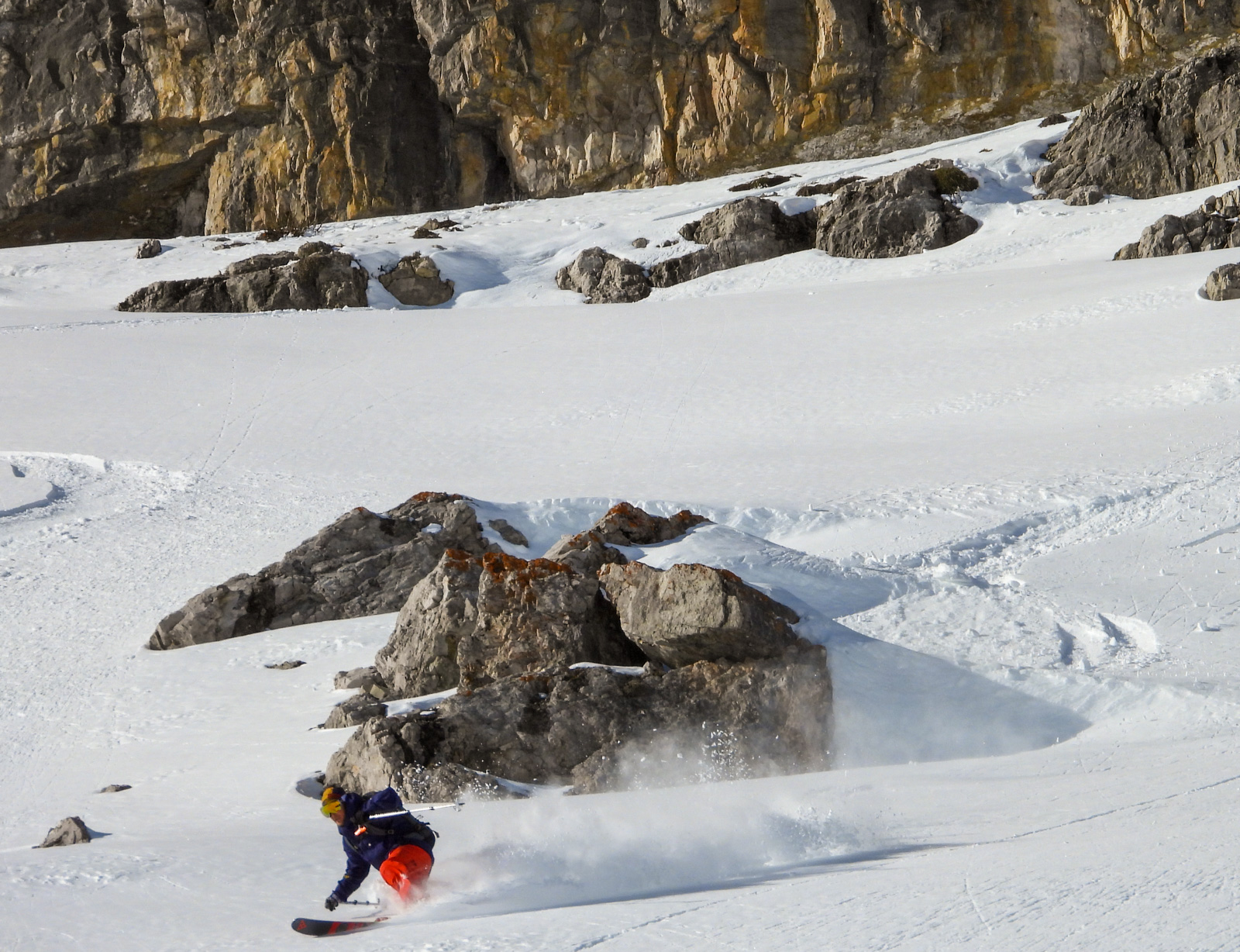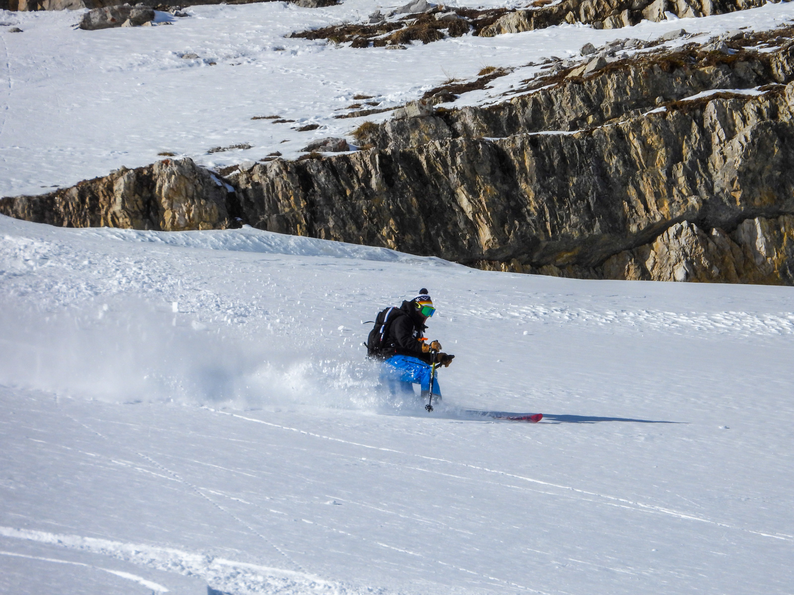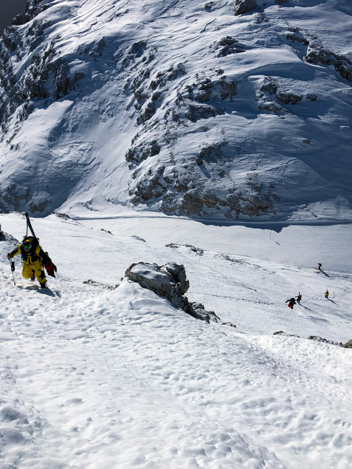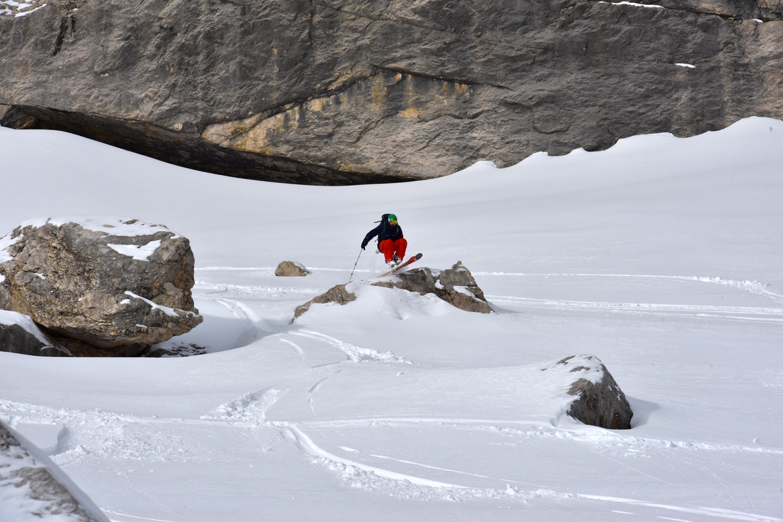 Malgré des conditions d’enneigement très faibles cet hiver, il les conduit en toute sécurité dans des couloirs habituellement inaccessibles et totalement fous, tant pour les sensations que pour les paysages à couper le souffle! Télémarks aux dos et parfois crampons aux pieds pour grimper sur des parois abruptes, via ferrata, … rider ici ça se mérite!