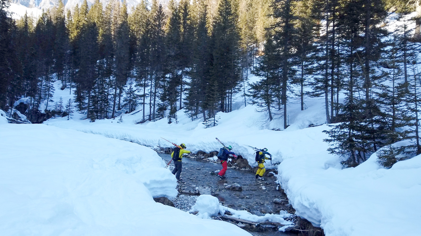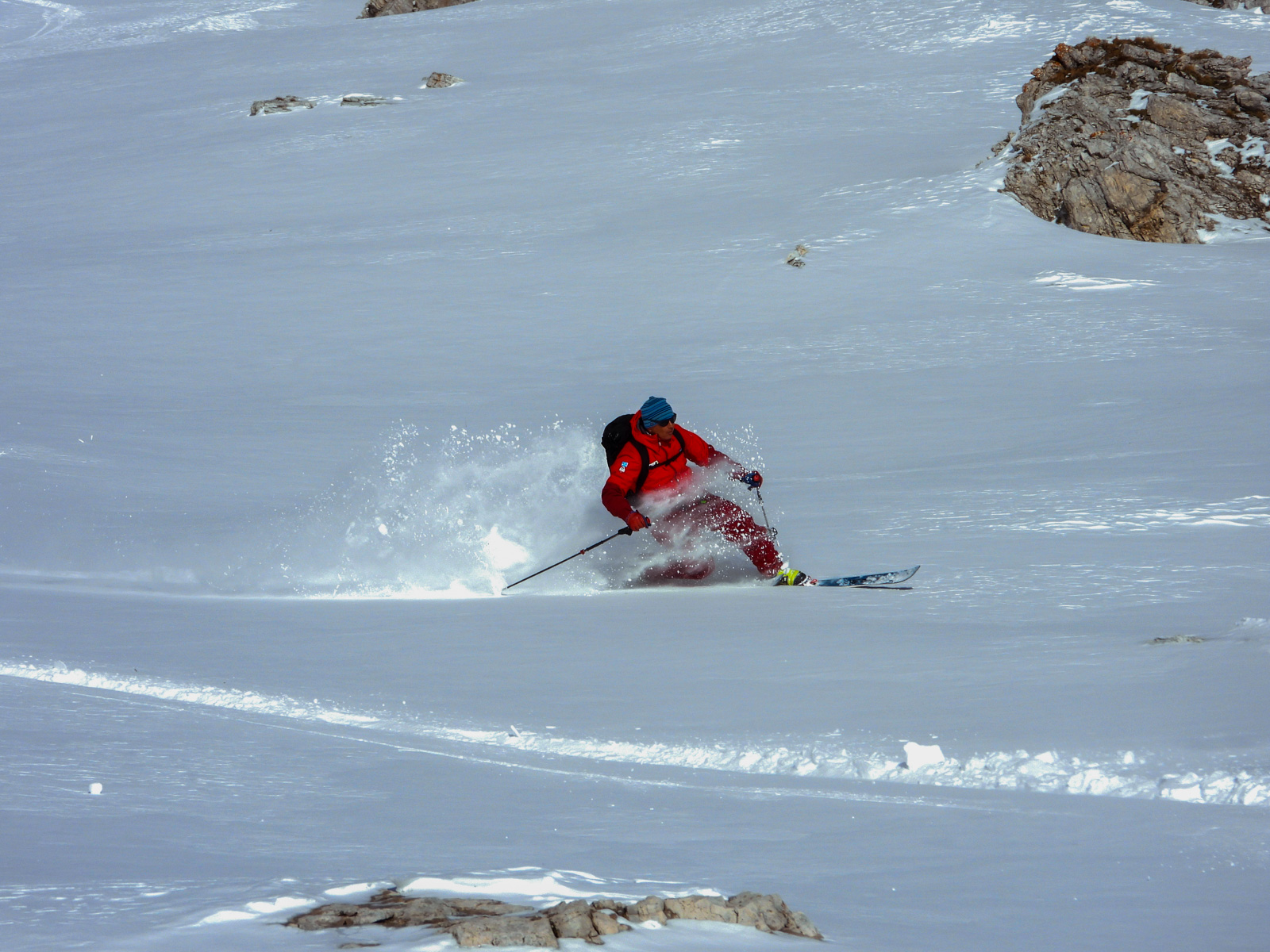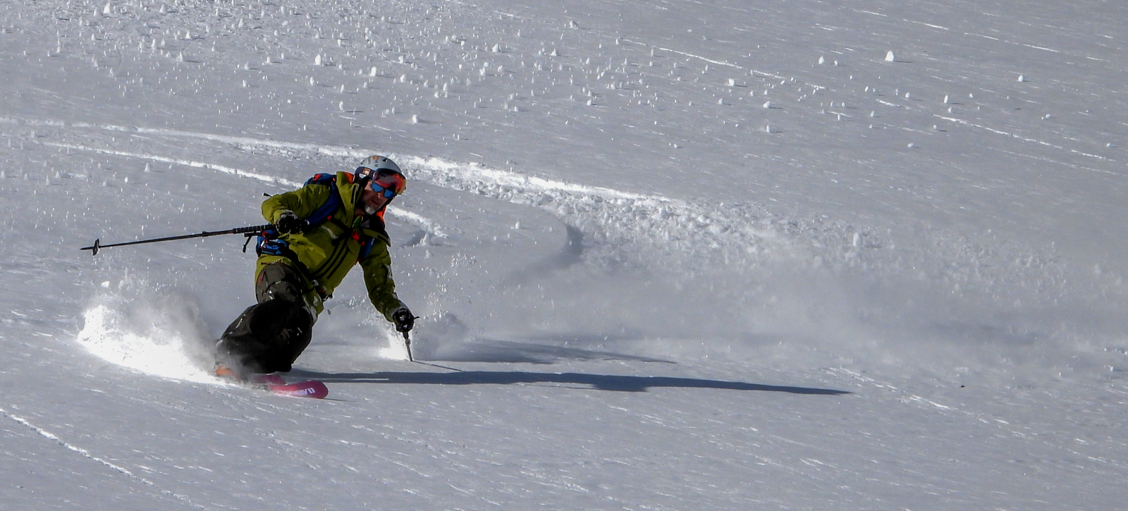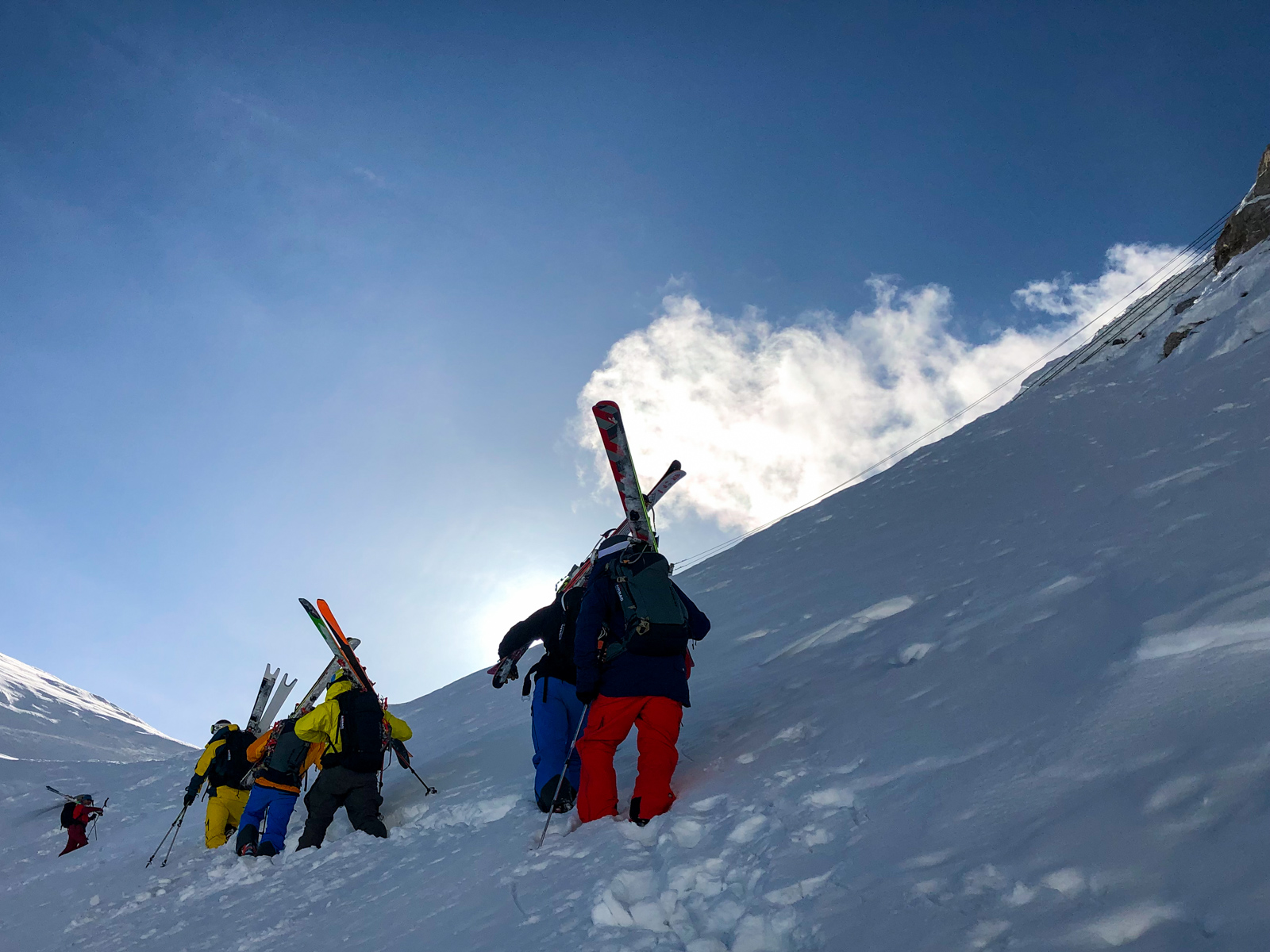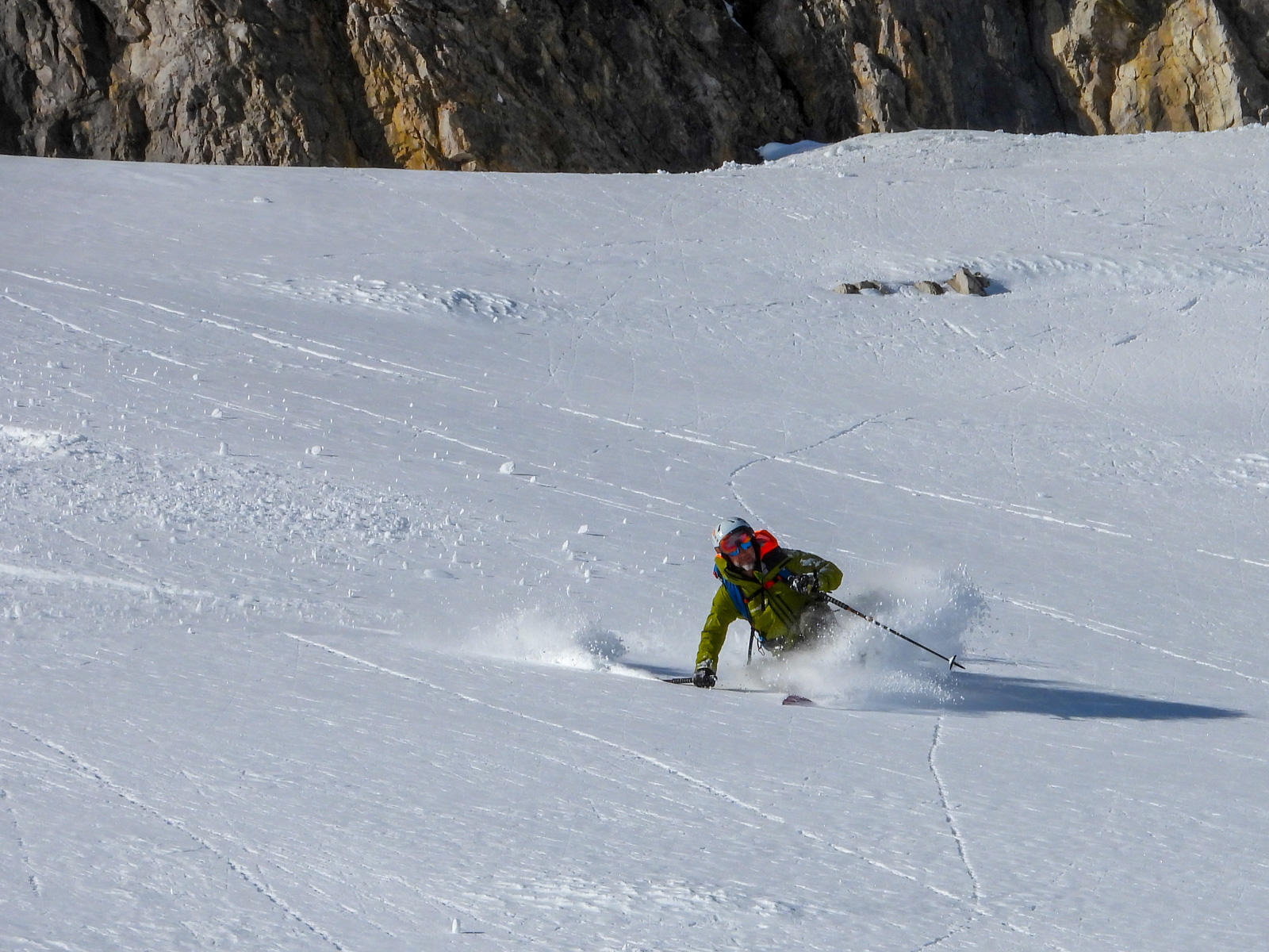 Malgré des conditions d’enneigement très faibles cet hiver, il les conduit en toute sécurité dans des couloirs habituellement inaccessibles et totalement fous, tant pour les sensations que pour les paysages à couper le souffle! Télémarks aux dos et parfois crampons aux pieds pour grimper sur des parois abruptes, via ferrata, … rider ici ça se mérite!